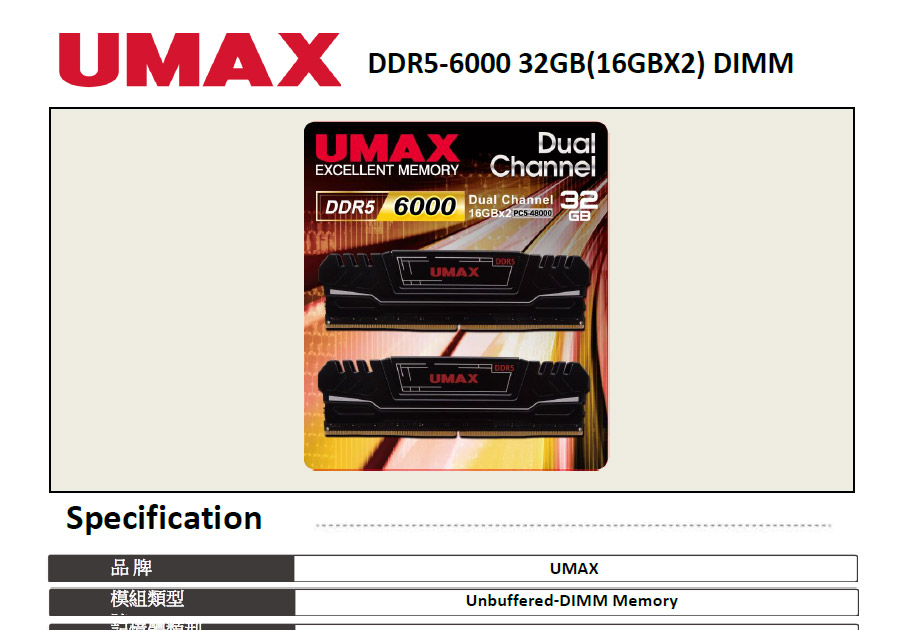 UMAXDDR5 6000 32GB CL30 超頻桌上型記憶體 | 上伊美辦公用品網