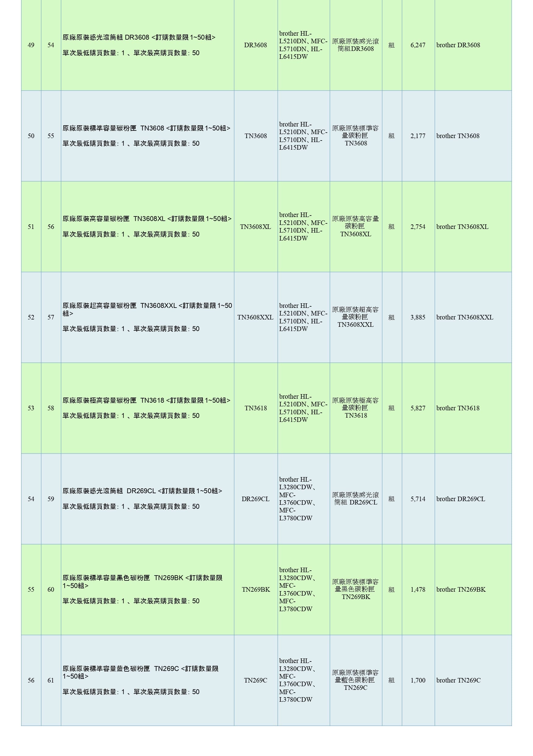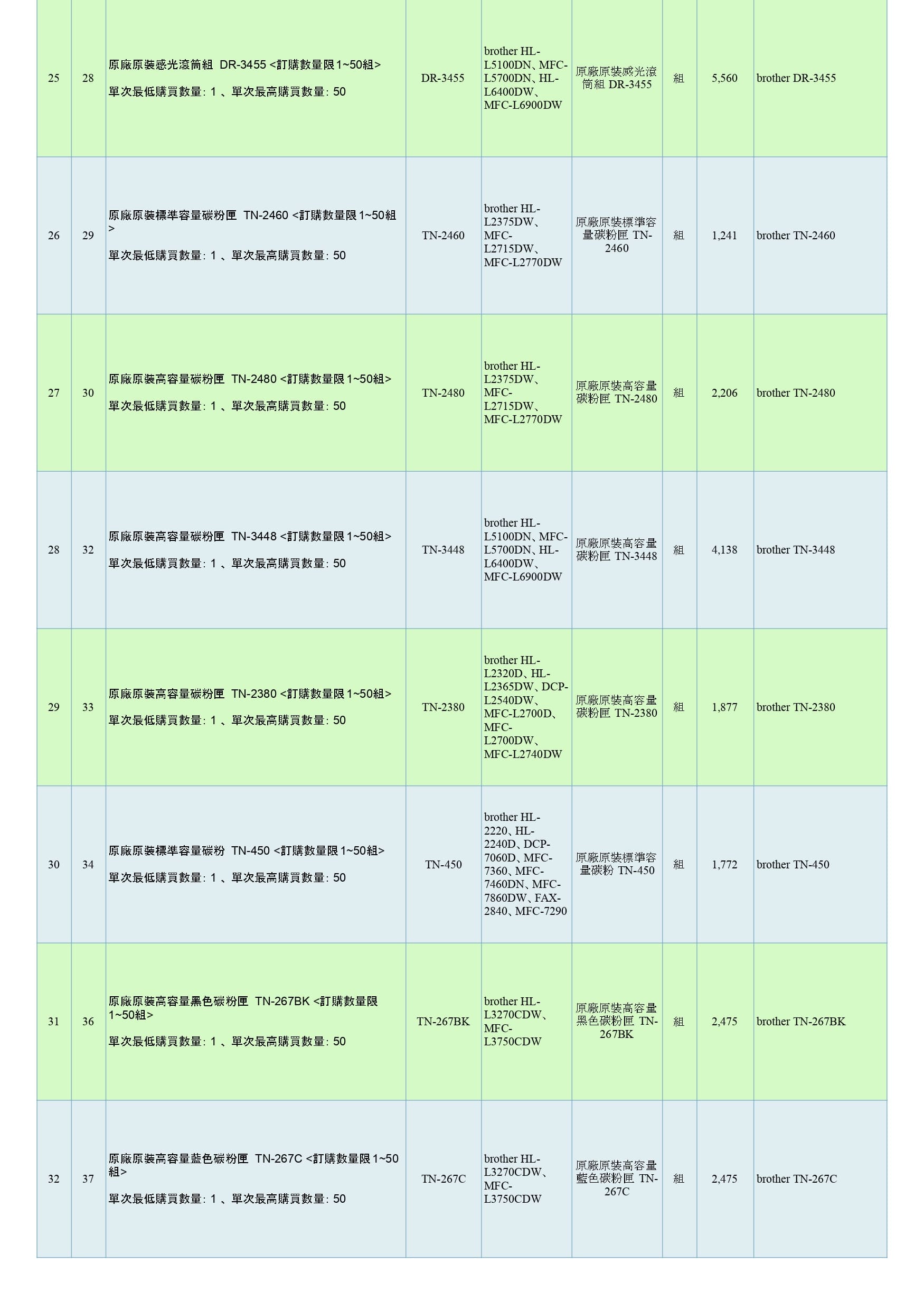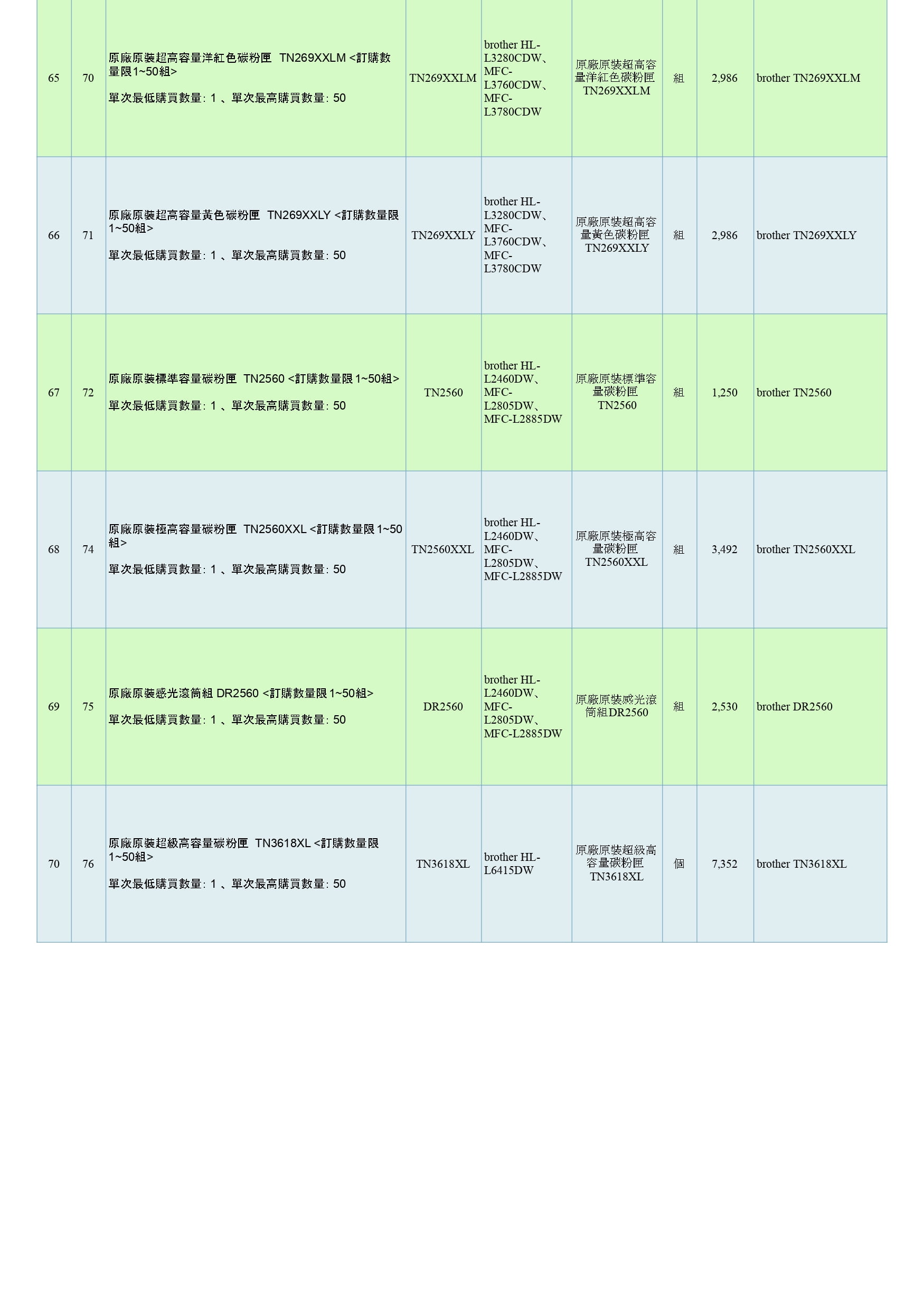 商品分類:印表機耗材 組別:BROTHER 原廠原裝印表機耗材