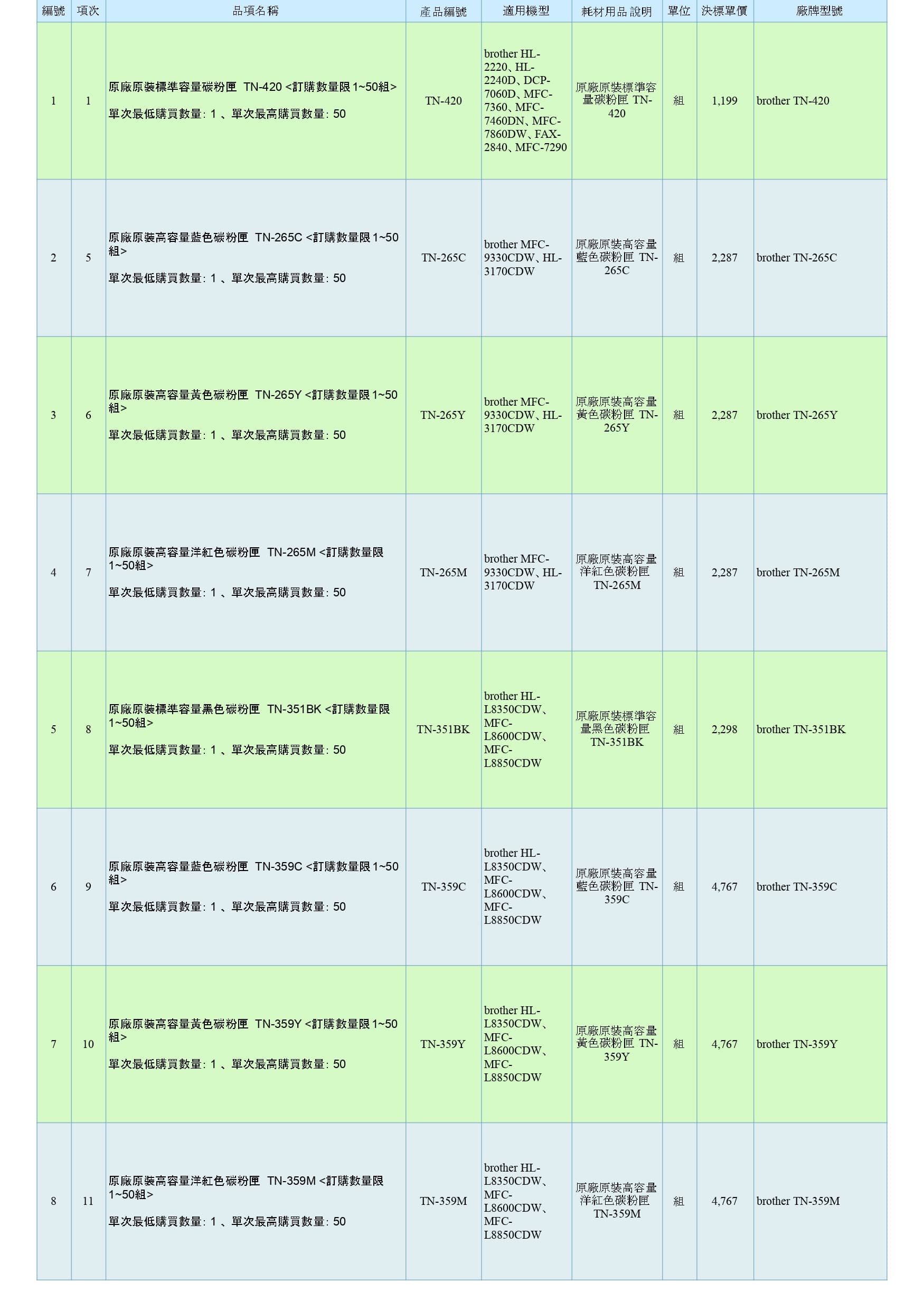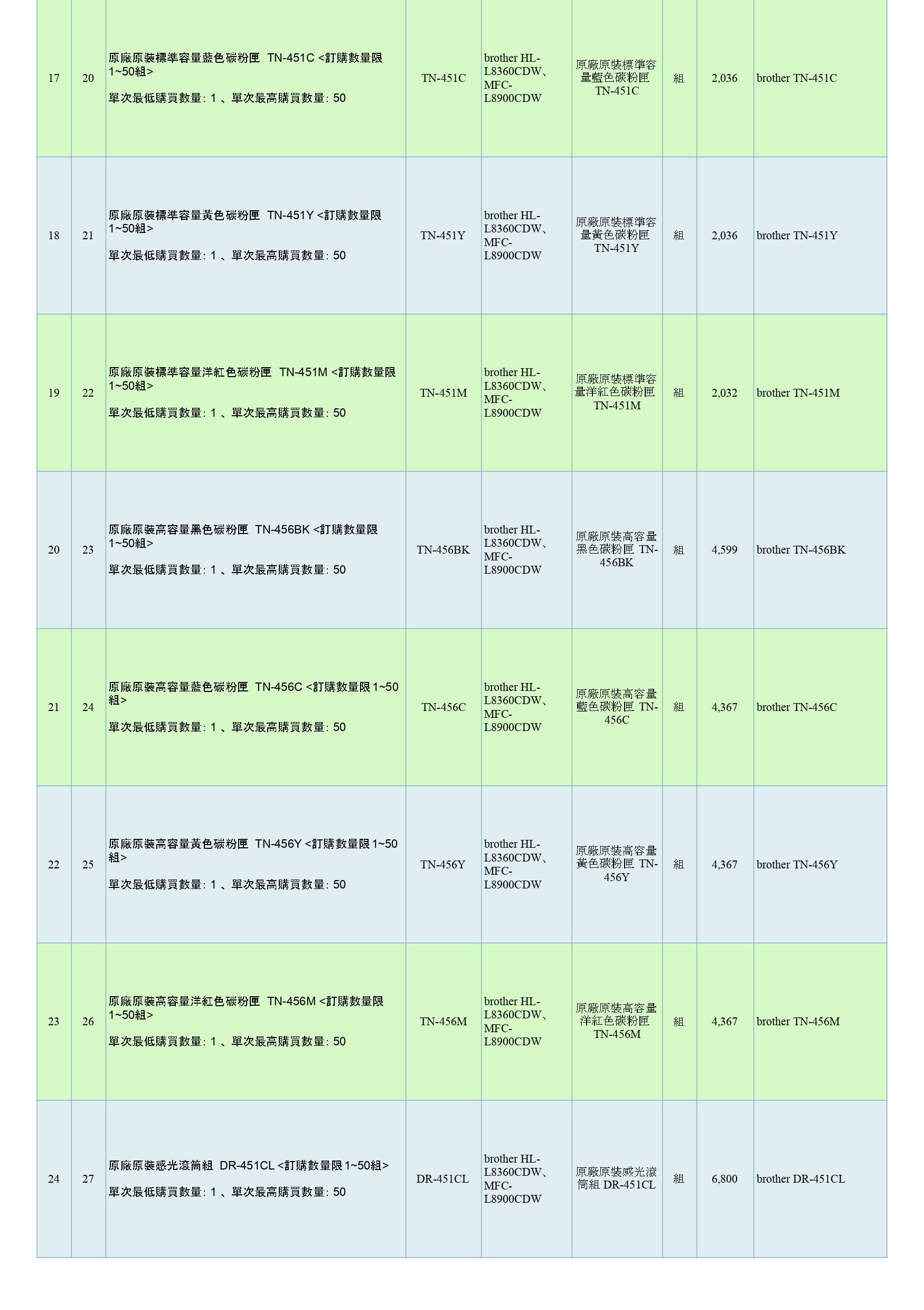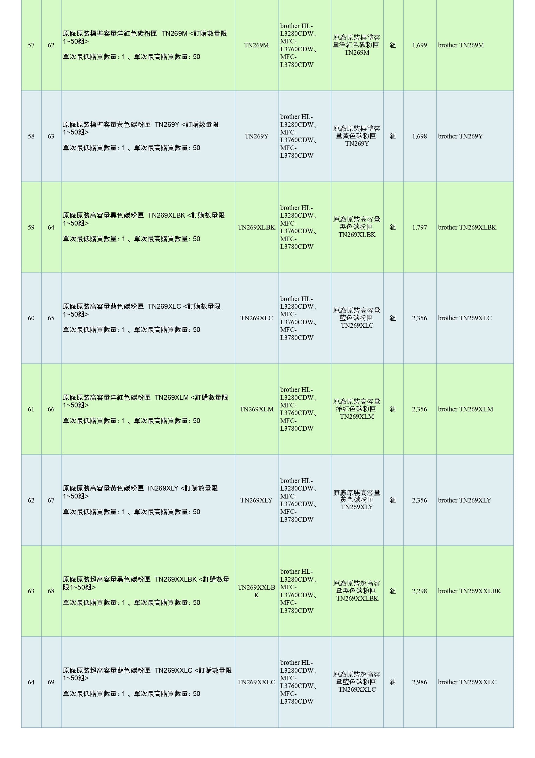 商品分類:印表機耗材 組別:BROTHER 原廠原裝印表機耗材